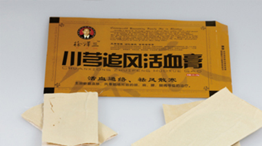 由川芎、当归等二十二味名贵中药材组成,主要工序有:选料、炸药、炼油、下丹、收膏去火毒、烊膏、摊涂、包装等十余个步骤进行,工艺繁杂。具有活血化瘀、祛风散寒、通络止痛及舒筋接骨之功效。